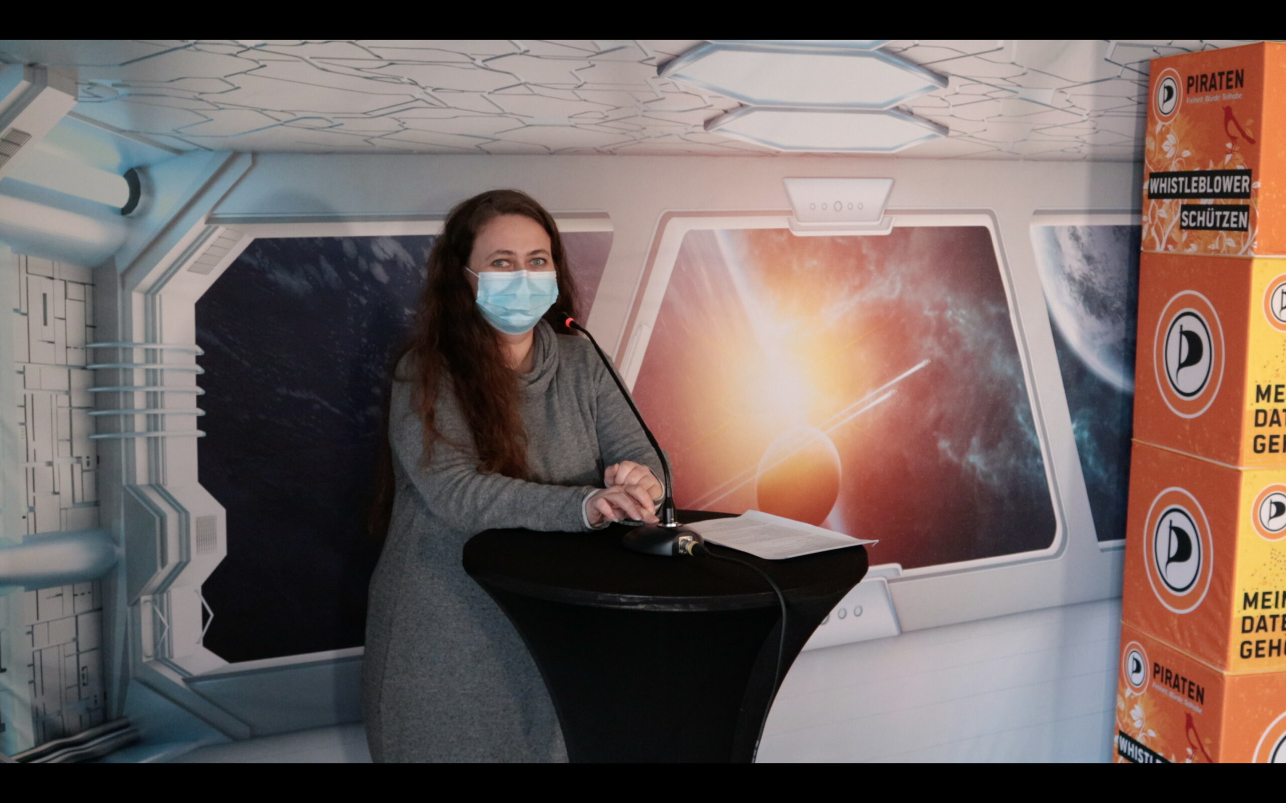 Die erste Erkenntnis vom Hybridparteitag: Eine der Lieblingssportarten der Piraten funktioniert auch hier. Unser „Raumschiff“ erhielt entsprechend bald den Spitznamen „GO Bounty“ (GO-, also Geschäftsordnungsanträge, dienen der Steuerung des Versammlungsablaufes, sind bei Piratenparteitagen aber mitunter auch für die Verzögerung des Ablaufs verantwortlich).