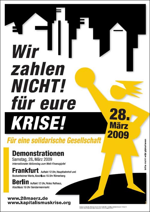Demoaufruf: Die derzeitige Krise ist keine normale Krise. Sie hat die ganze Welt erfaßt und stellt den schwersten Einbruch nach 1945 dar.