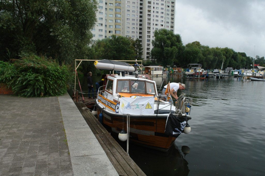 Die Peace bei Dekorationsarbeiten, bevor es los gingAuch an Land Vorbereitungen auf die DemoFand nicht jeder lustig……aber die meisten haben gelachtDer Fahrradkorso aus Berlin trifft einDie Teilnehmer auf dem Wasser finden sich einFür musikalische Begleitung ist gesorgtDie Peace wird zum KamerabootAuf geht es zur Fahrt durch die StadtAm Anfang sah es ziemlich grün aus……das haben wir etwas korrigiertWasser- und Landdemo treffen sich wieder an der Langen BrückeZieleinfahrt zur SchlusskundgebungDen anschließenden traditionellen Trikottausch haben wir aus Gründen der Persönlichkeitsrechte nicht festgehalten
